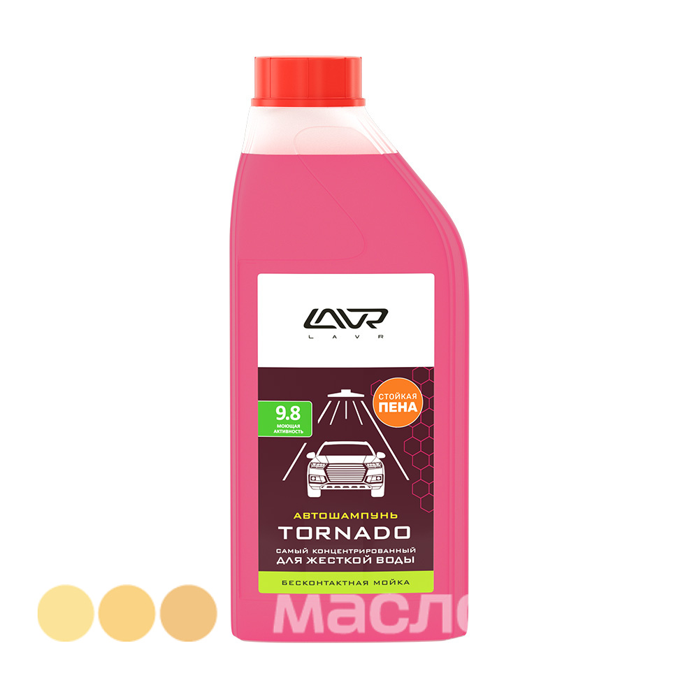 Автошампунь для бесконтактной мойки TORNАDO LAVR – профессиональный высококонцентрированный состав для очистки внешних поверхностей автомобилей, мотоциклов, велосипедов и т.д. Средство с усиленной моющей способностью для жесткой воды. Сохраняет высокие моющие свойства даже при минимальных концентрациях разведения. Формула безопасна для поверхностей кузова.